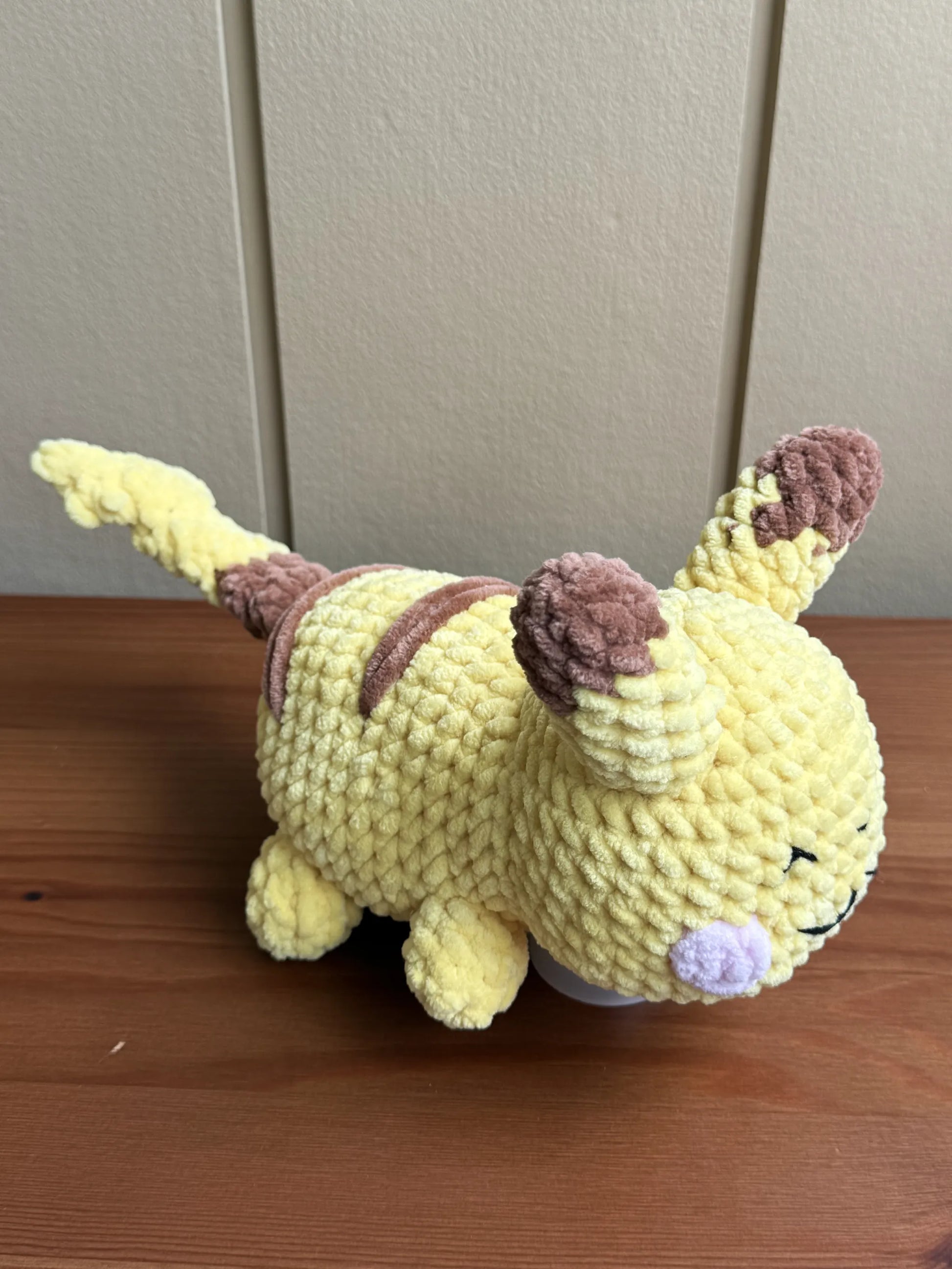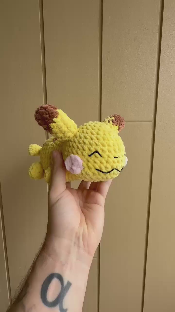 "Même au crochet, les joues de Pikachu semblent prêtes à crépiter. Mais pas de panique : son attaque câlin est plus fréquente que Tonnerre."