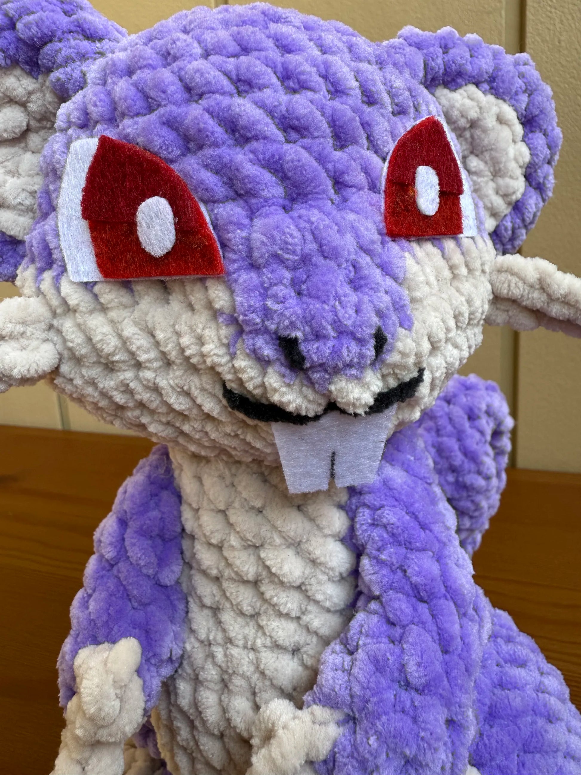 🐭 Rattata surgit de la collection Croch’mon, crocheté avec ses petites dents prêtes à grignoter tout ce qu’il trouve… sauf ton cœur, qu’il a déjà volé.