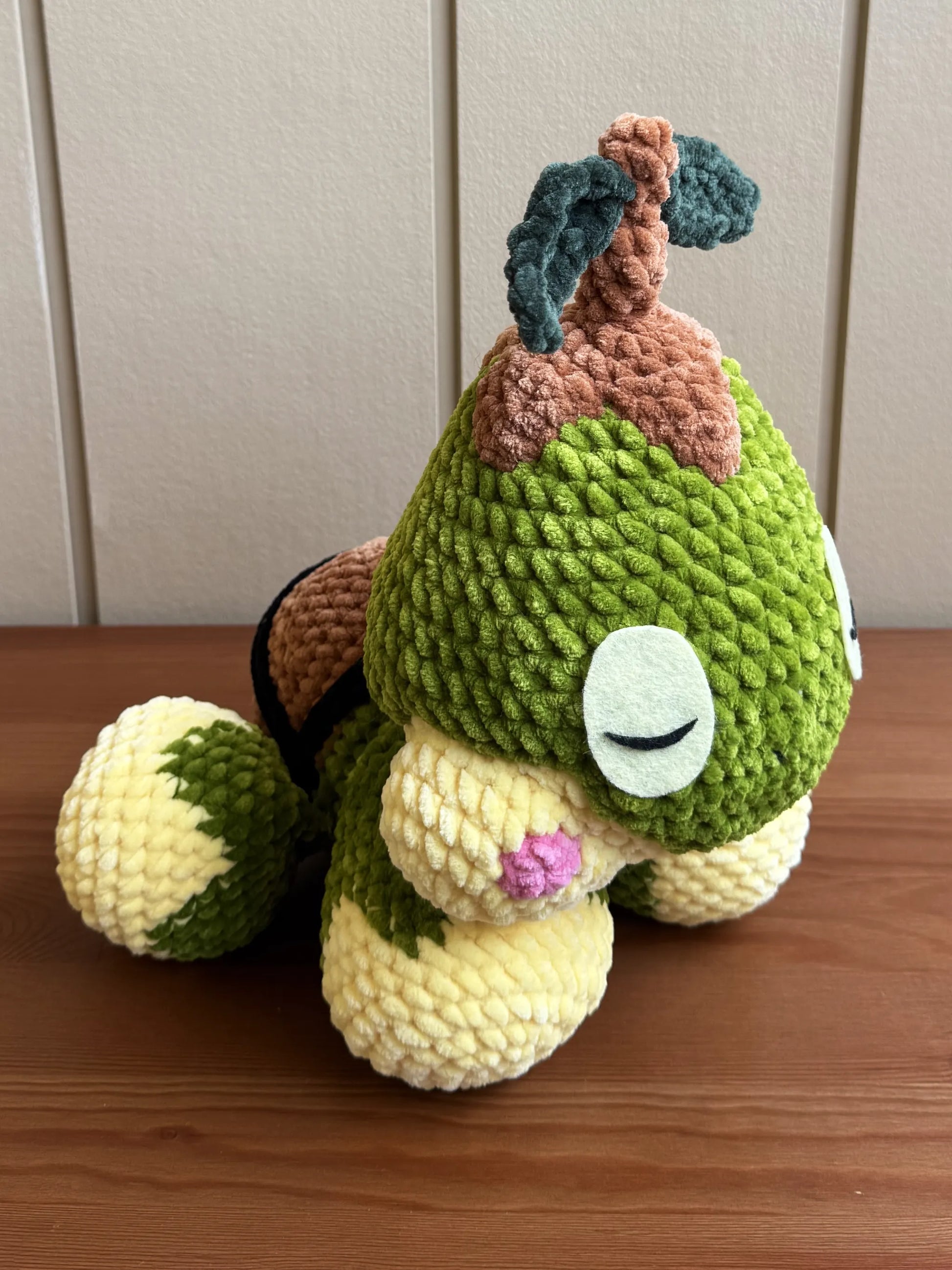 🌱 Tortipouss pousse fièrement dans la collection Croch’mon, crocheté avec sa petite carapace de terre et la feuille qui trône sur sa tête comme une couronne végétale.